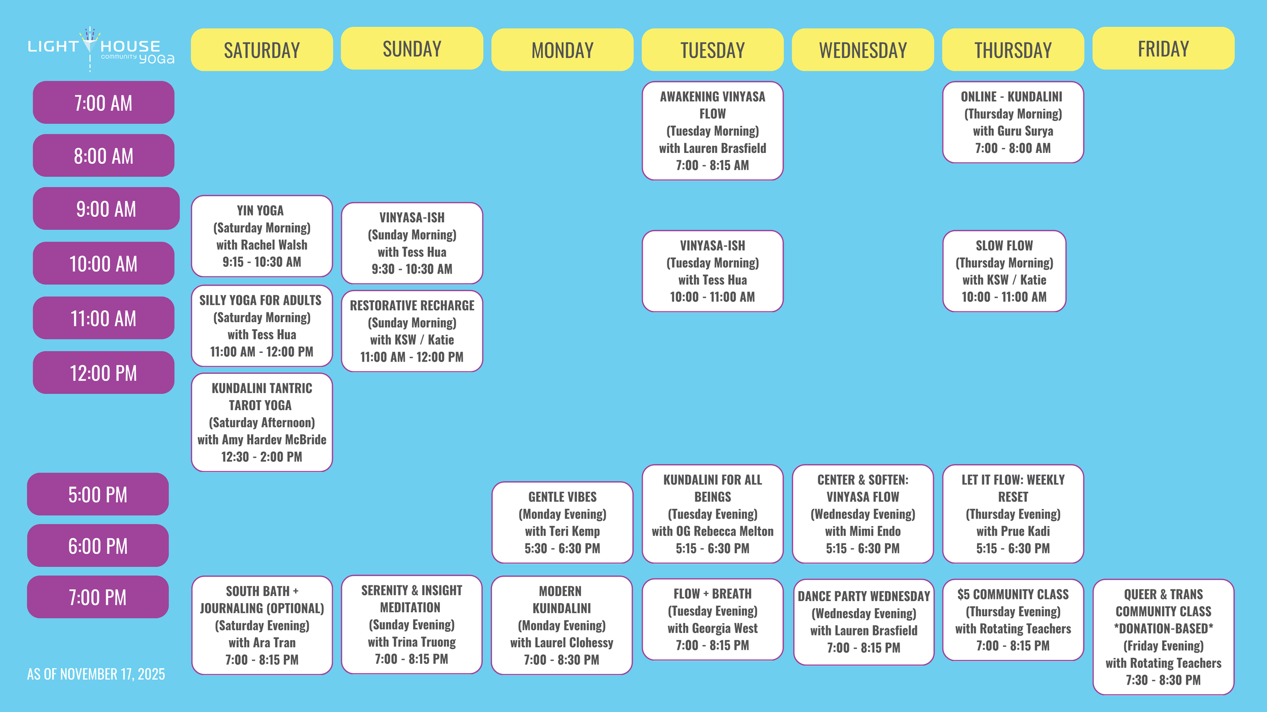 WEEKLY CLASS SCHEDULE