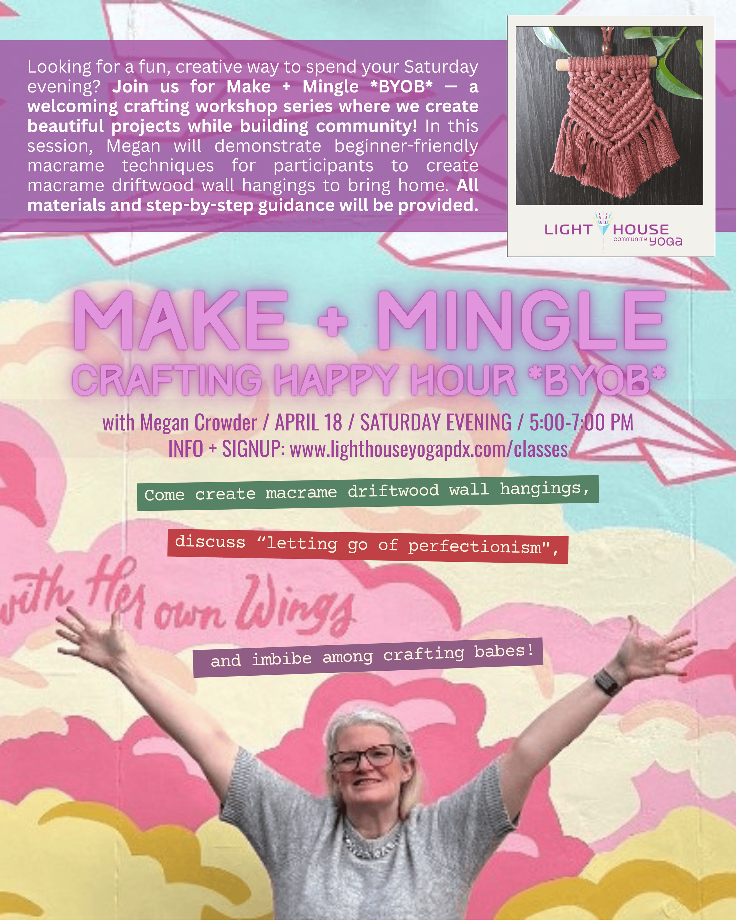 We offer diverse styles including kundalini, vinyasa, restorative, yin, hatha, and more! Also we host a variety of non-yoga offerings, including breathwork, sound baths, meditation, dance, and crafting/macrame!