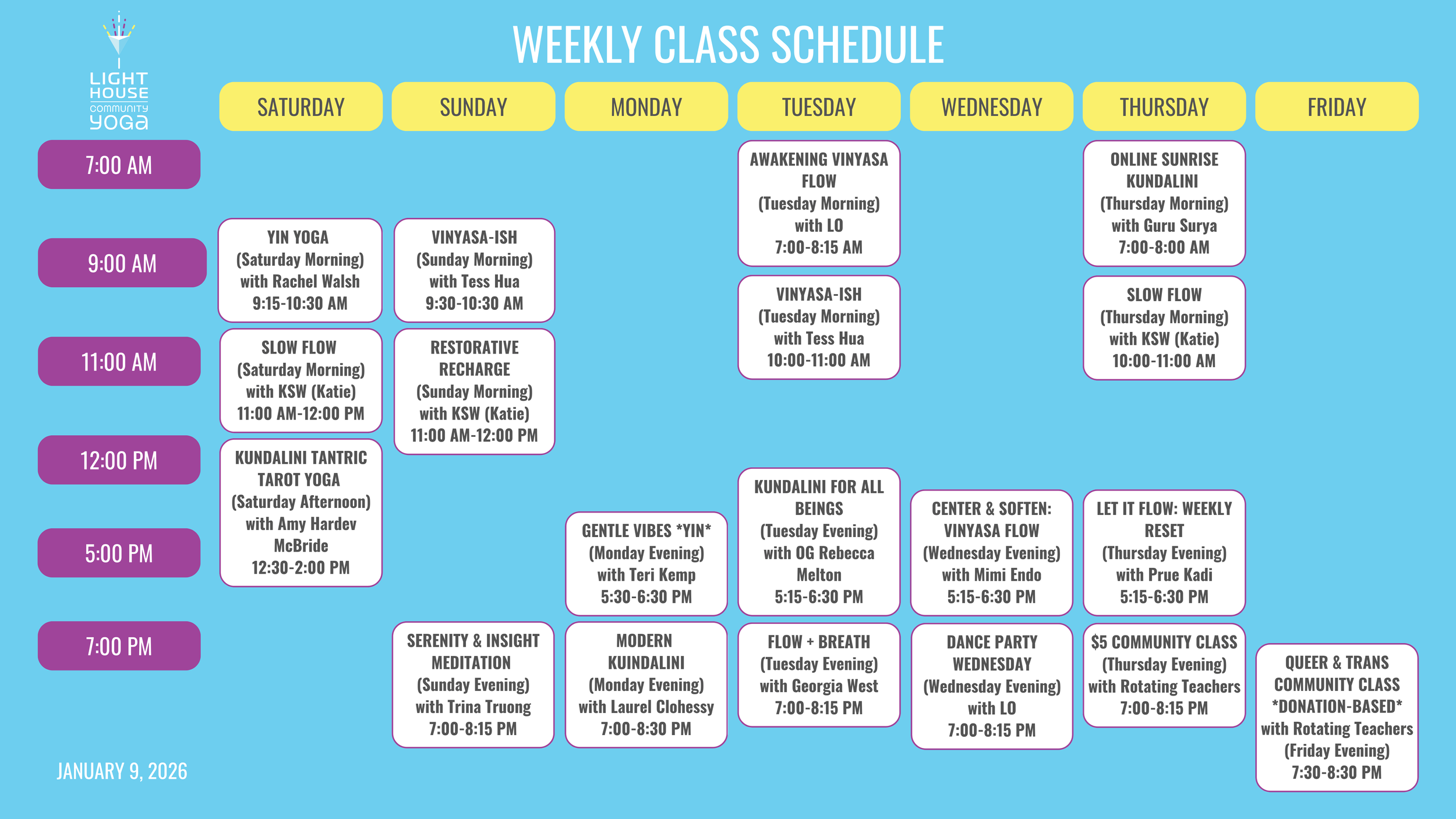 ALL OFFERINGS INCLUDING ALL CLASSES, WORKSHOPS + SPECIAL EVENTS
